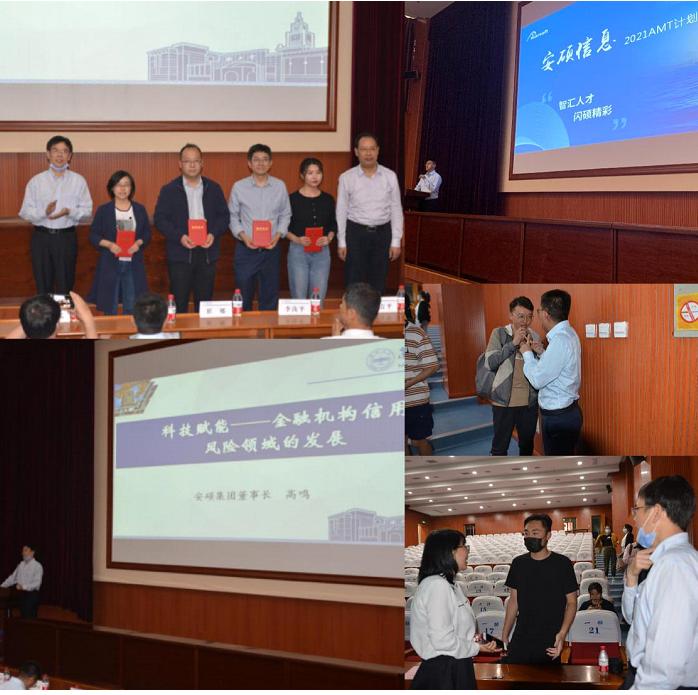 活动上,高鸣董事长与李万同院长共同为获得“安硕奖教金”的四位老师颁奖。之后,高鸣董事长作题为《科技赋能——金融机构信用风险领域的发展》的讲座,将金融行业与数学专业、信息专业相结合,讲述金融行业信用风险领域的发展,他表示,身处社会高速发展的新时代,青年学生要学好专业知识,学以致用,努力为国家贡献力量。随后,活动启动了安硕管培生实习夏令营暨2021届提前批录用仪式,大数据总经理于海军为大家做AMT计划宣讲,他表示十分欢迎兰大学子的加入,为安硕信息注入新的活力,期待携手共创美好明天。